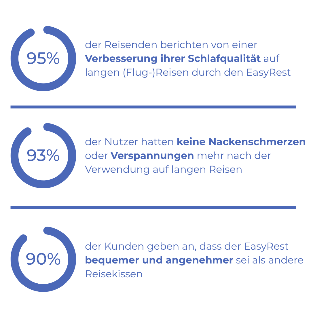 Etwa 61% aller Reisenden klagen über unzureichenden Schlaf. Deshalb haben wie den EasyRest entwickelt - für erholsamen Schlaf, gegen ständiges Aufwachen!